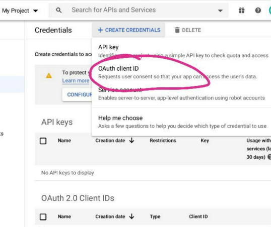 and then on OAuth client ID