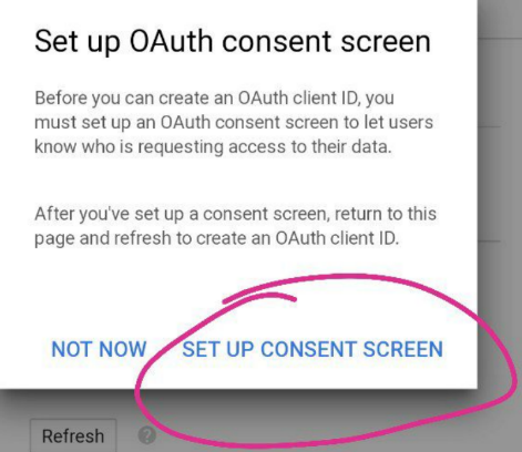 Now a pop up appears as below click on SET UP CONSENT SCREEN in that pop up