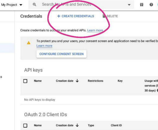 now click on create credentials