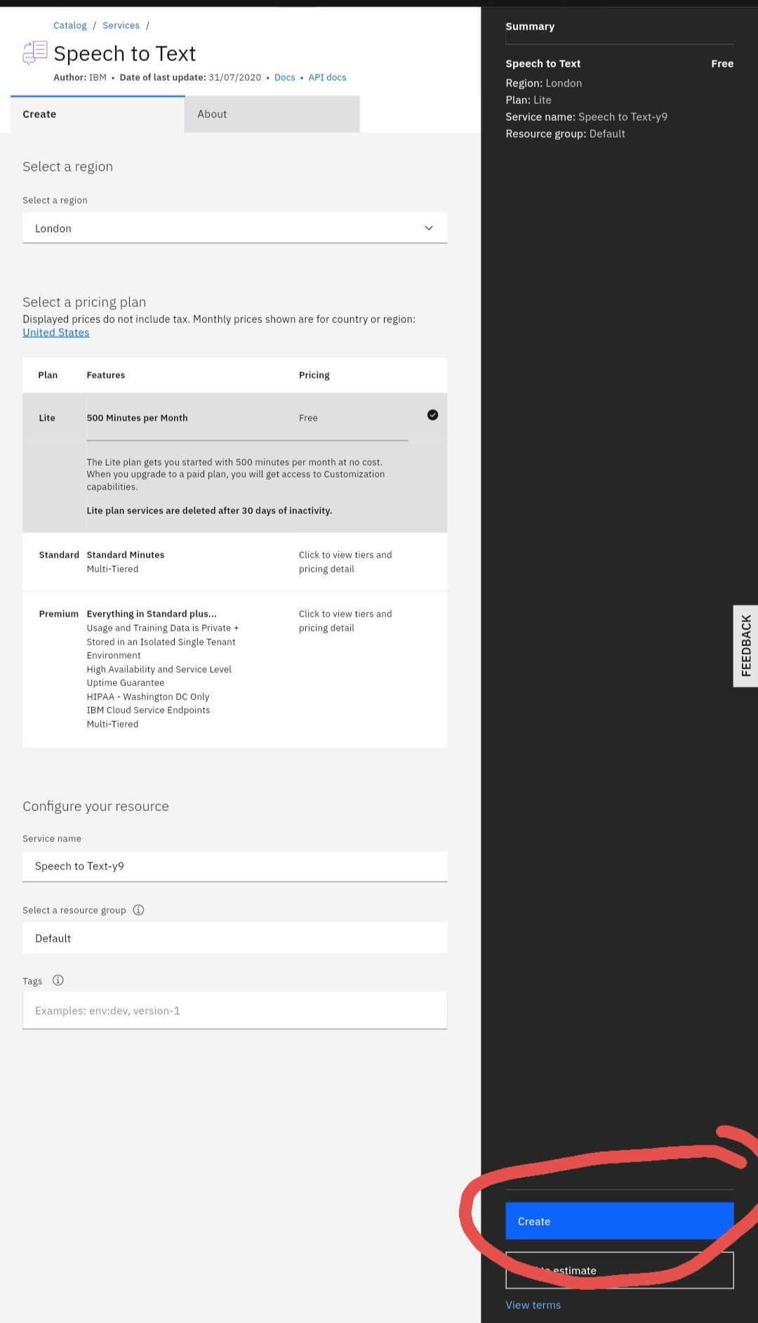 Click on Create.