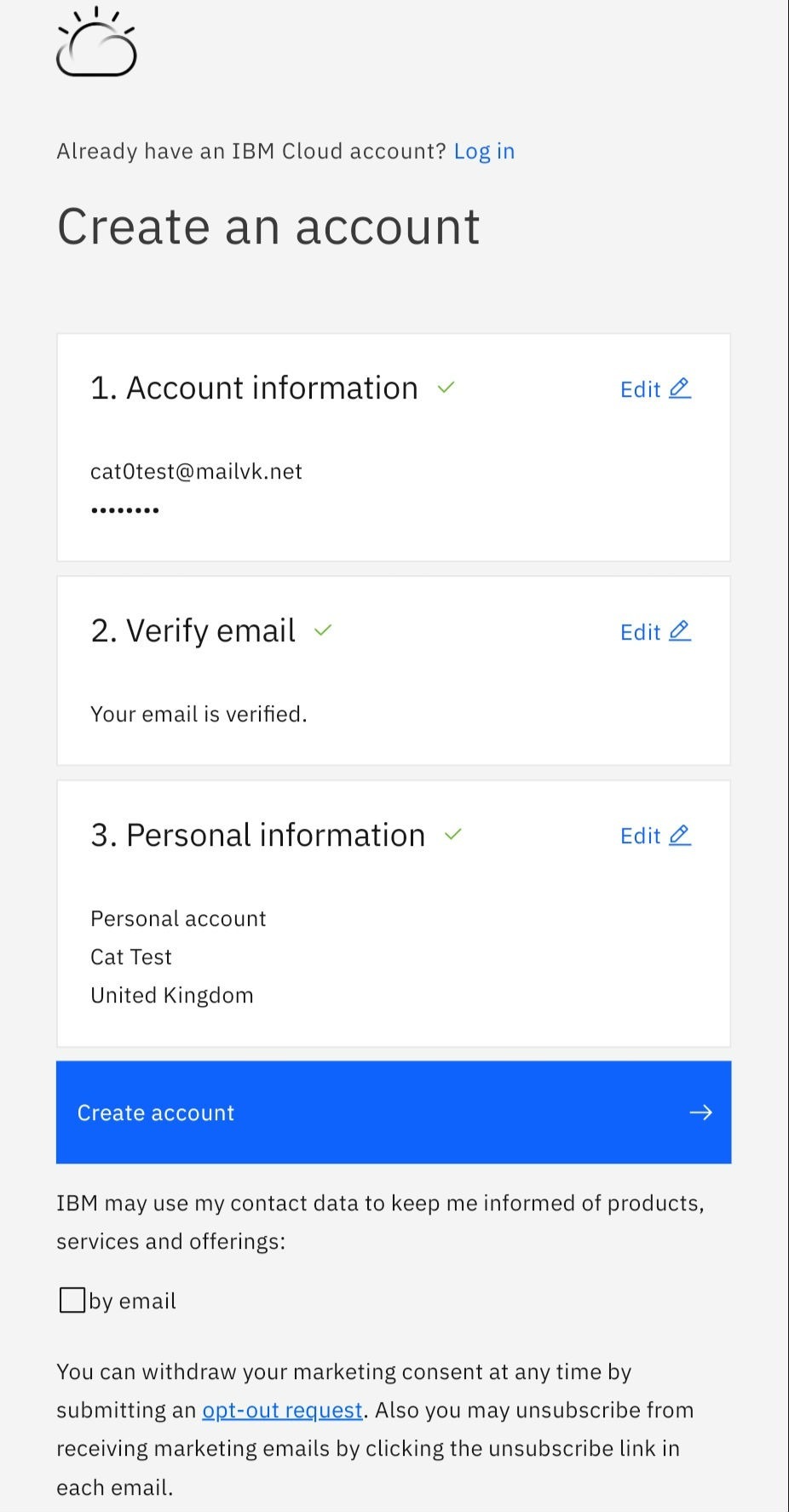First create an account on IBM using your email.